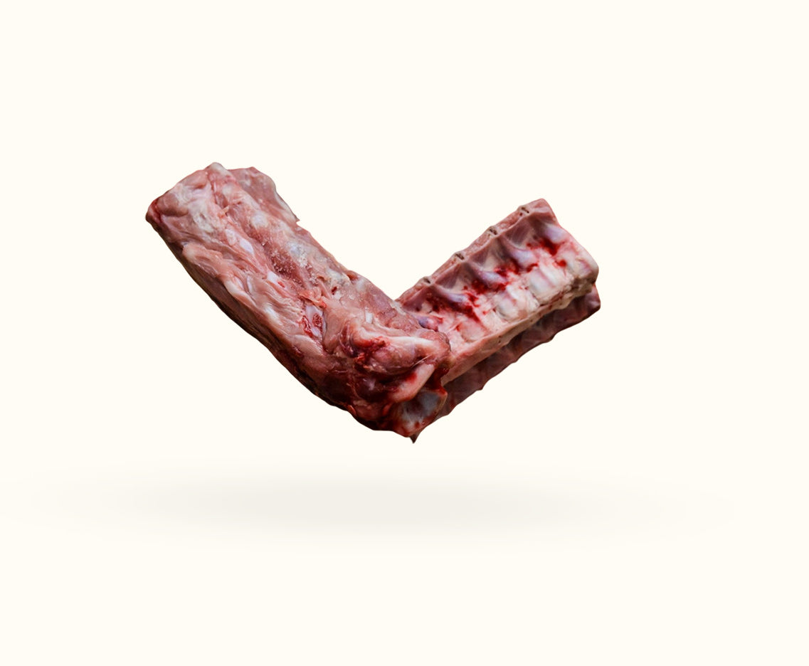 Meaty veal necks, spine and ribs locally sourced from animals up to 9 months. We buy our veal from local abattoirs, whole on the bone and butcher them ourselves at our premises to ensure top quality chunks of meat and meaty bones.